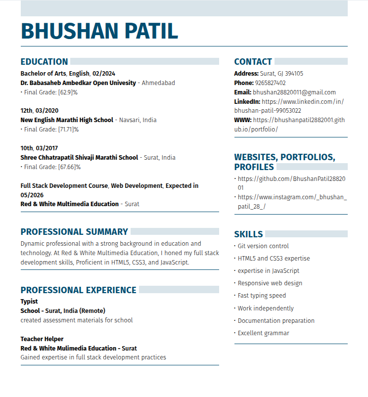 Hi, I'm Bhushan Patil, a passionate Full-Stack Developer based in India. I specialize in crafting intuitive, user-centered digital experiences that merge beautiful design with robust functionality across the entire stack.